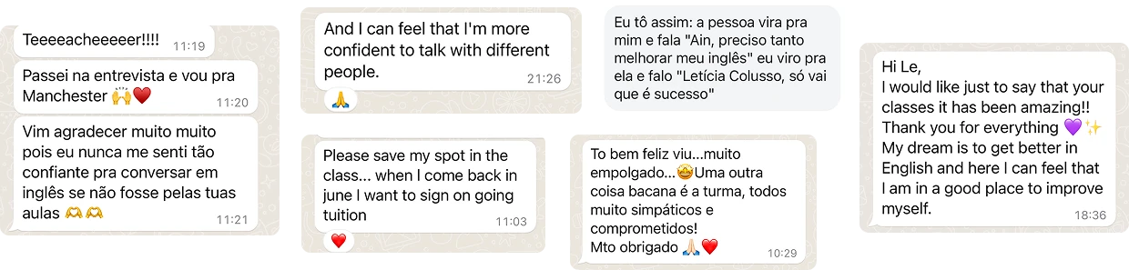 Alguns feedbacks da galera que faz parte do Fluent&Free: